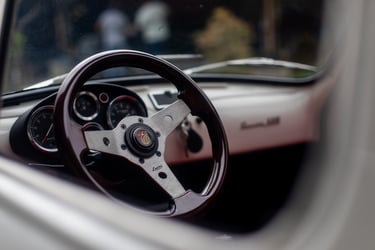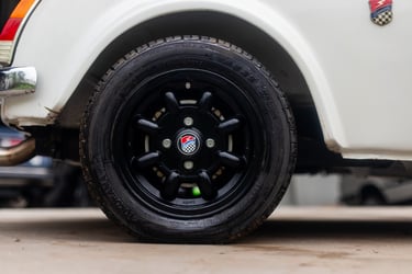 El interior cuenta con asientos deportivos, un volante personalizado tipo racing y tablero adaptado. Ideal para quienes buscan un clásico europeo con herencia deportiva, listo para destacarse en cualquier exhibición o ruta de montaña.